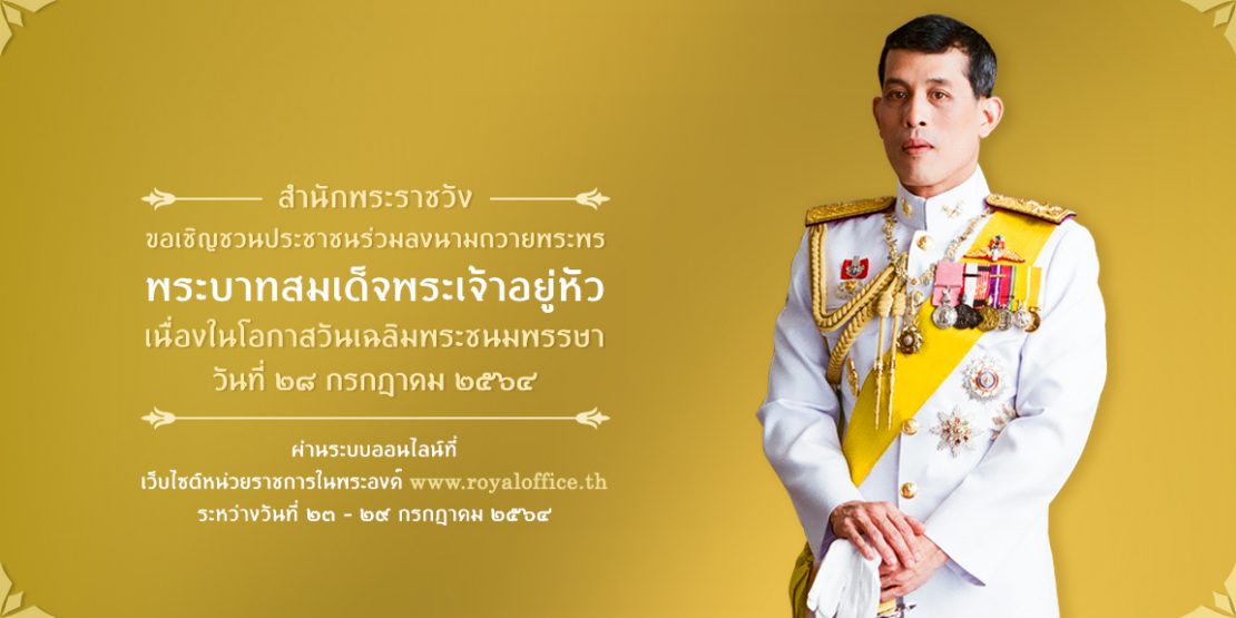 ขอเชิญร่วมลงนามถวายพระพรพระบามสมเด็จพระเจ้าอยู่หัว เนื่องในโอกาสวันเฉลิมพระชนมพรรษา