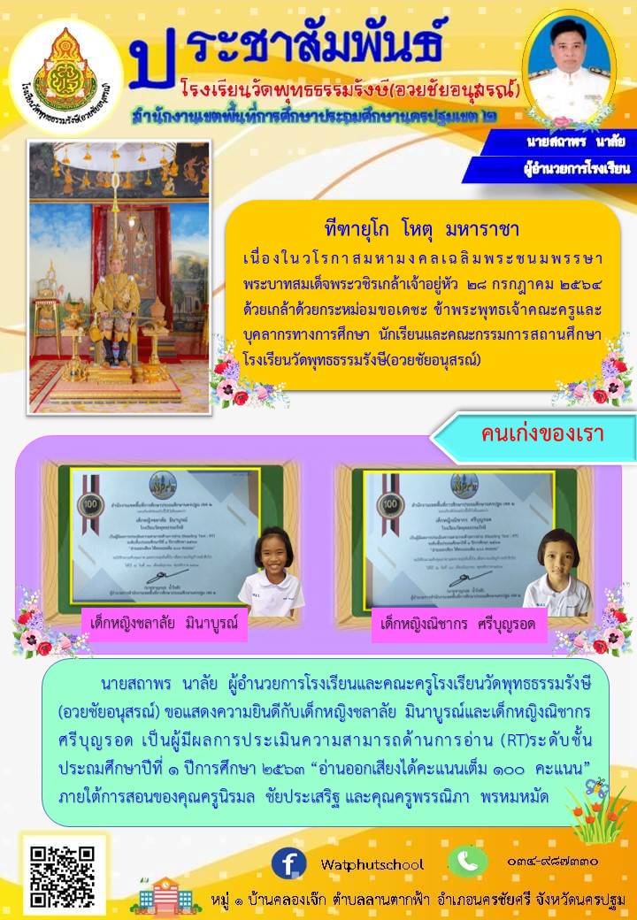 ขอแสดงความยินดีกับนักเรียนที่มีคะแนนอ่านออกเสียง 100คะแนน