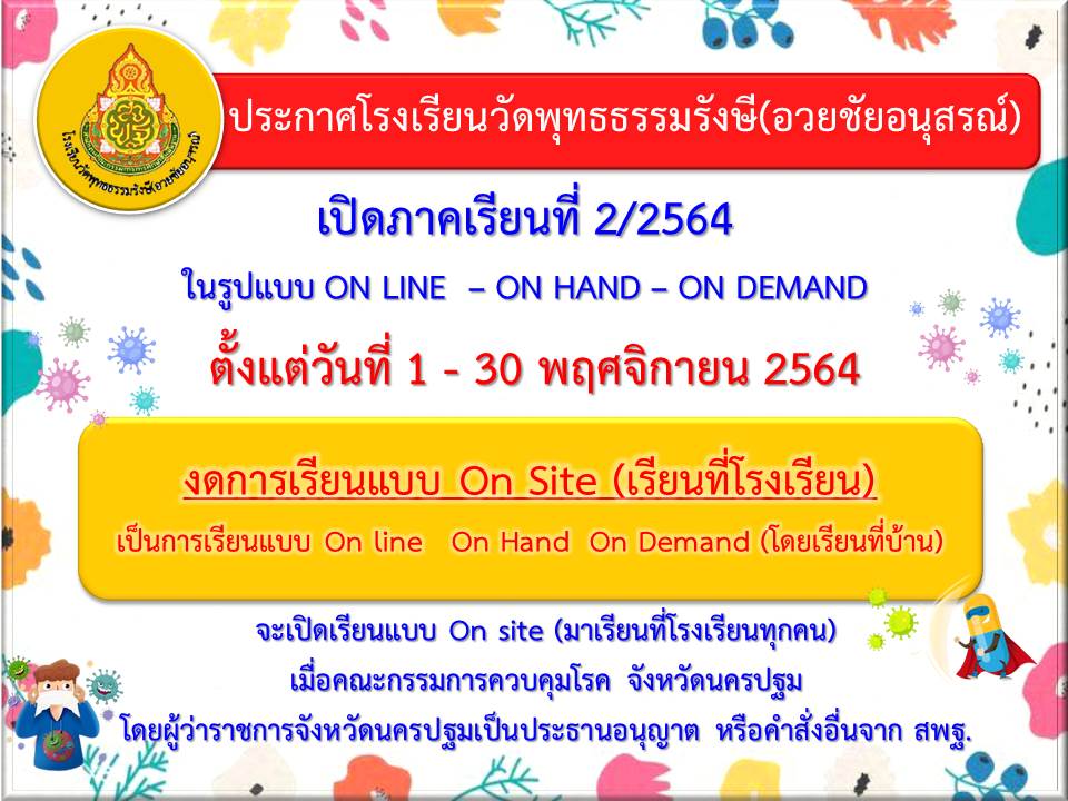 ประกาศ งดการจัดการเรียนการสอนแบบ ON SITE