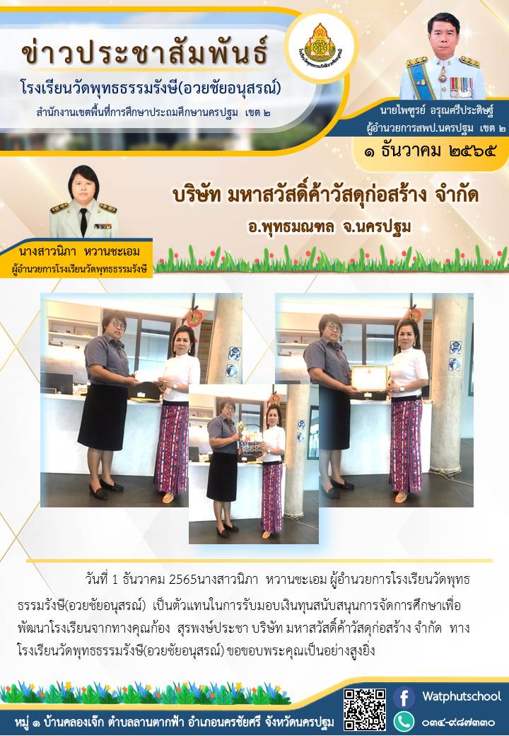 รับมอบทุนจาก บริษัท มหาสวัสดิ์ค้าวัสดุก่อสร้าง จำกัด