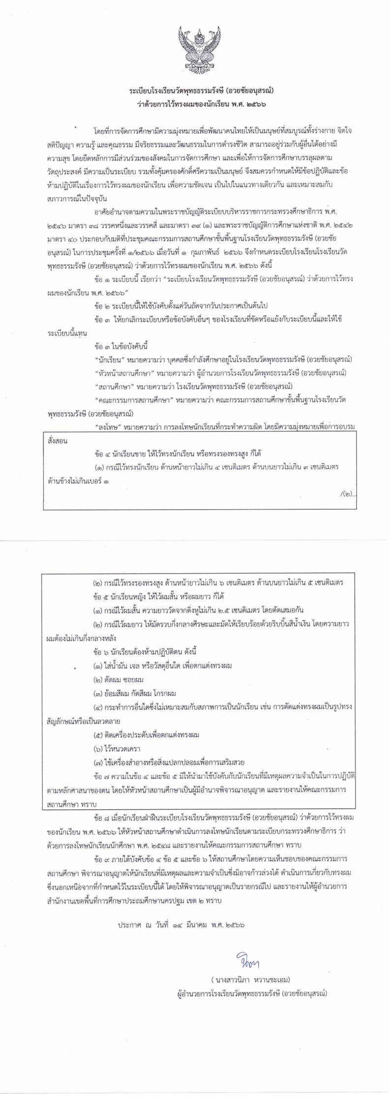 ระเบียบทรงผมนักเรียนโรงเรียนวัดพุทธธรรมรังษี(อวยชัยอนุสรณ์) ปีพ.ศ.2566